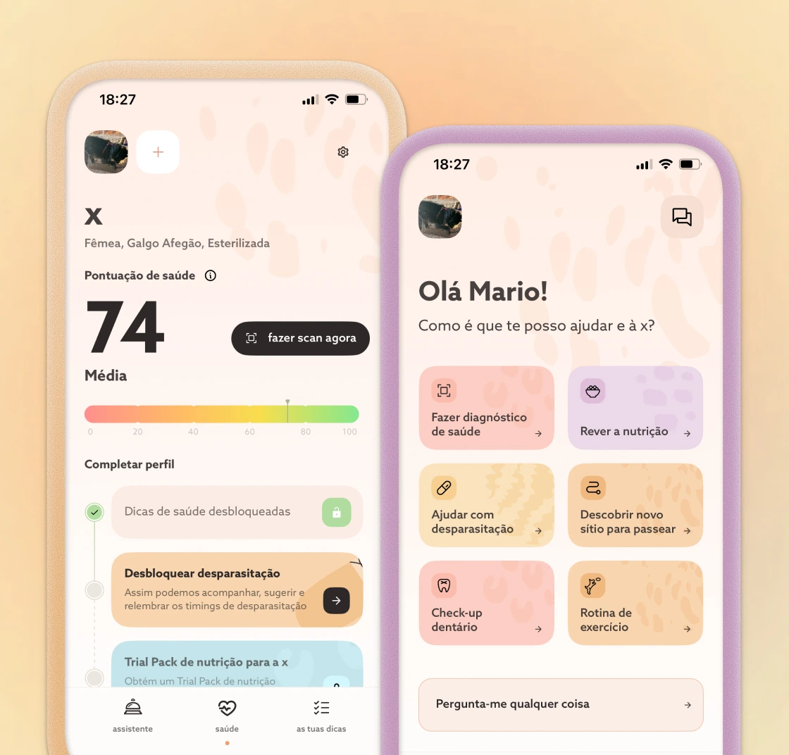The app enables dog owners to capture photos and receive AI-powered health insights through a simple, guided experience. Images are analyzed to generate a clear health score and personalized recommendations, supporting early awareness and preventive care.